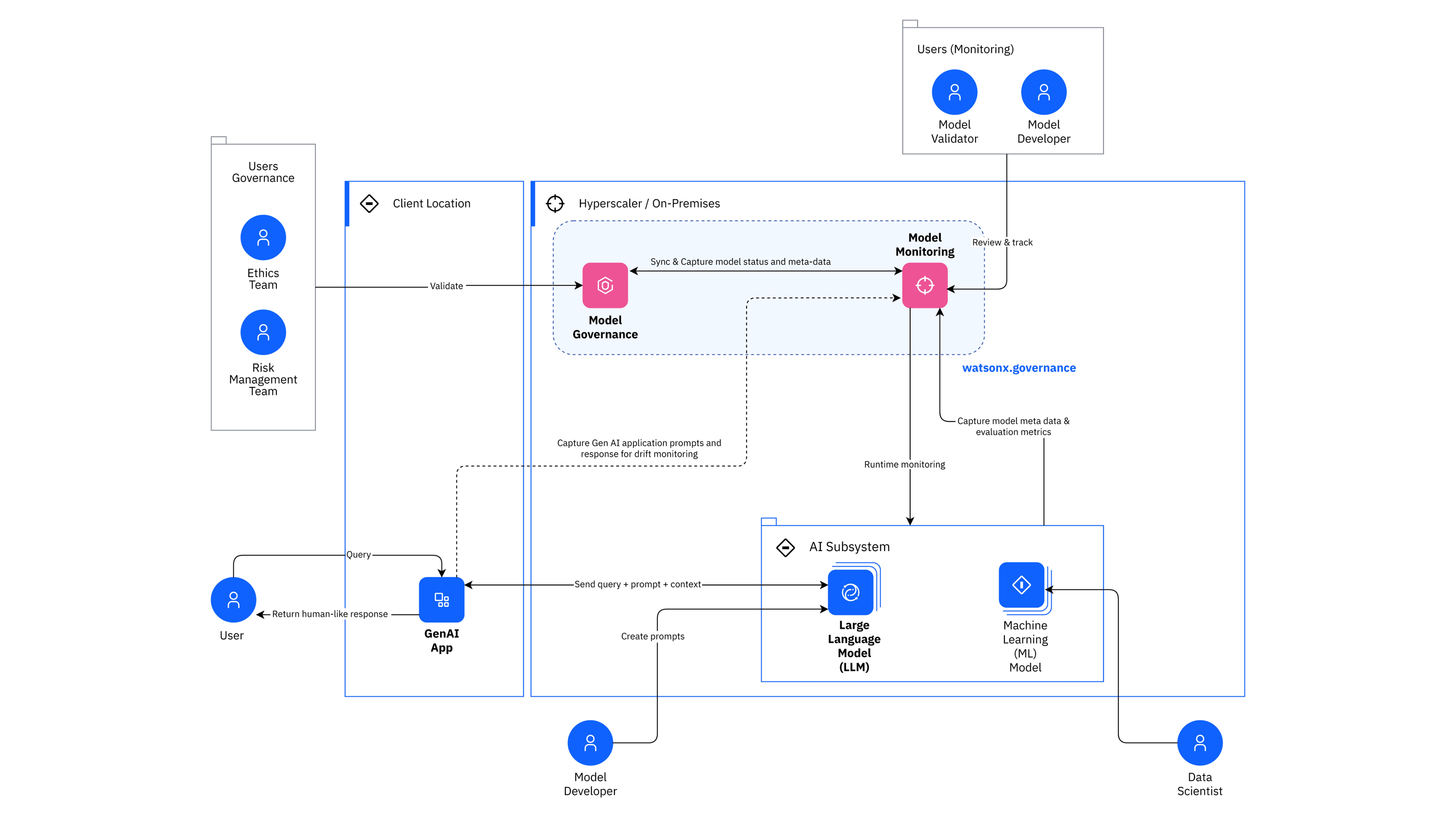 AI governance ecosystem map outlining data flows, responsibilities, and monitoring touchpoints across the model lifecycle.
